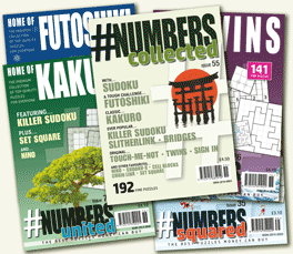 In this title we take a fresh approach to a puzzle which is quite similar to a crossword or an arroword but with sums for clues and numbers for answers. The name Kakuro may be familiar but in #numbers these puzzles have been reinvigorated and the results are close to perfection.